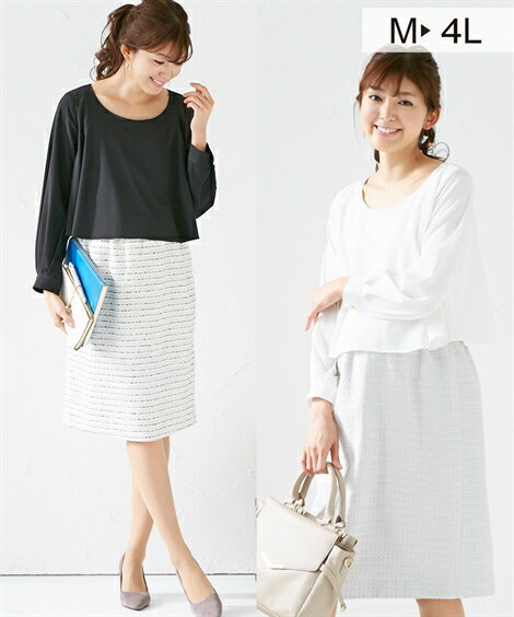 ワンピース マタニティ 大きいサイズ ママ 授乳 服・産前・産後 LOVE MIC 通勤や フォーマル にも使えるツィード×ジョーゼット チュニック オフホワイト/黒 LL/3L ニッセン